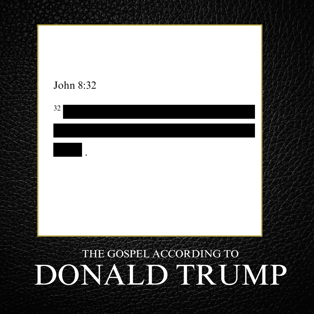 Inspired by Thomas Jefferson’s razor blade and Trump’s Bible-for-sale hustle, this redacted version of Matthew, Mark, Luke, and John erases any trace of humility, compassion, love, or concern for the poor. What's left? A Jesus who performs miracles and becomes famous.